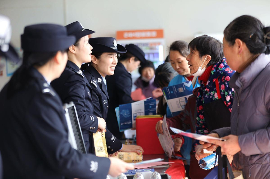 1月6日,安徽省舒城县公安局组织交管、网安、禁毒、经侦、刑侦等警种走进杭埠镇一家企业,开展“110宣传进企业”主题活动。