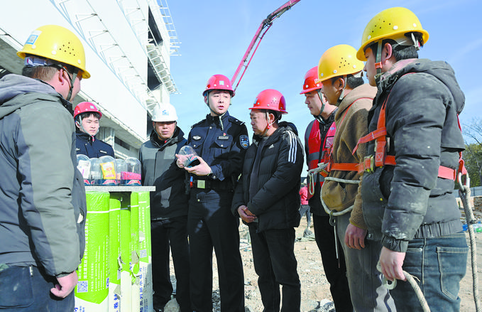 1月14日,安徽省当涂县公安局姑孰派出所组织警力深入辖区工地,通过发放宣传单等形式向务工人员宣传识毒防毒知识,引导他们远离毒品、珍爱生命。