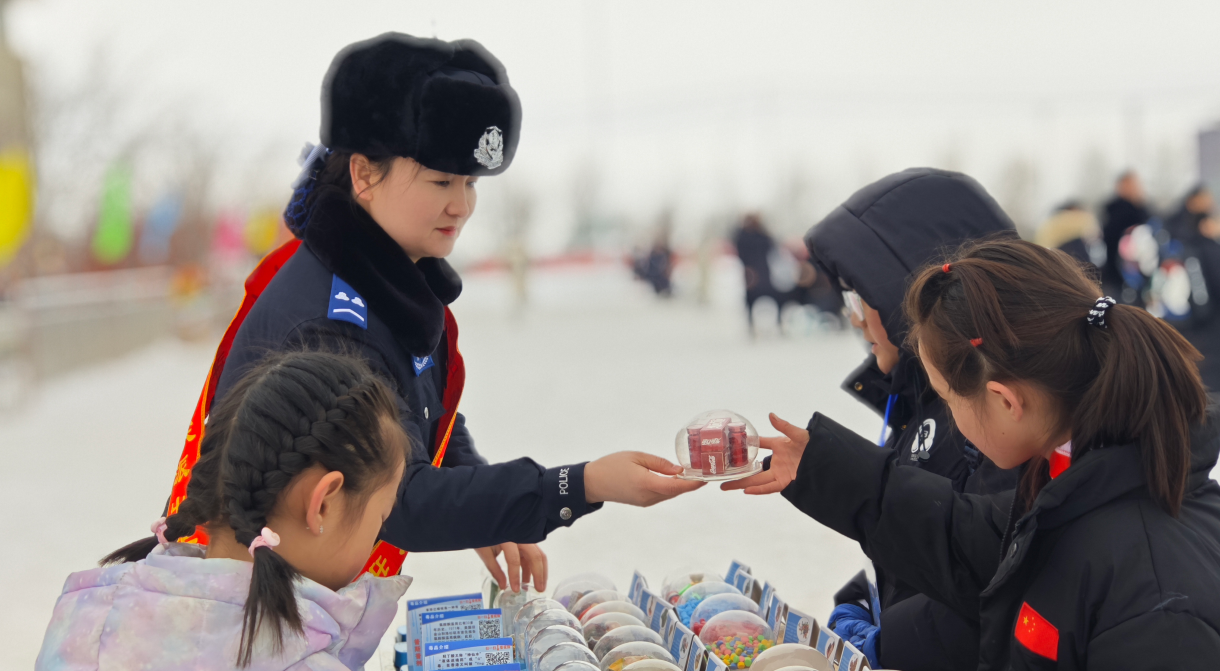 新疆奇台县公安局奇台镇犁铧尖派出所创新“安保+普法”服务模式,将禁毒宣传融入冰雪嘉年华,让识毒、防毒、拒毒的种子随冰上竞技的热情一同播撒。
