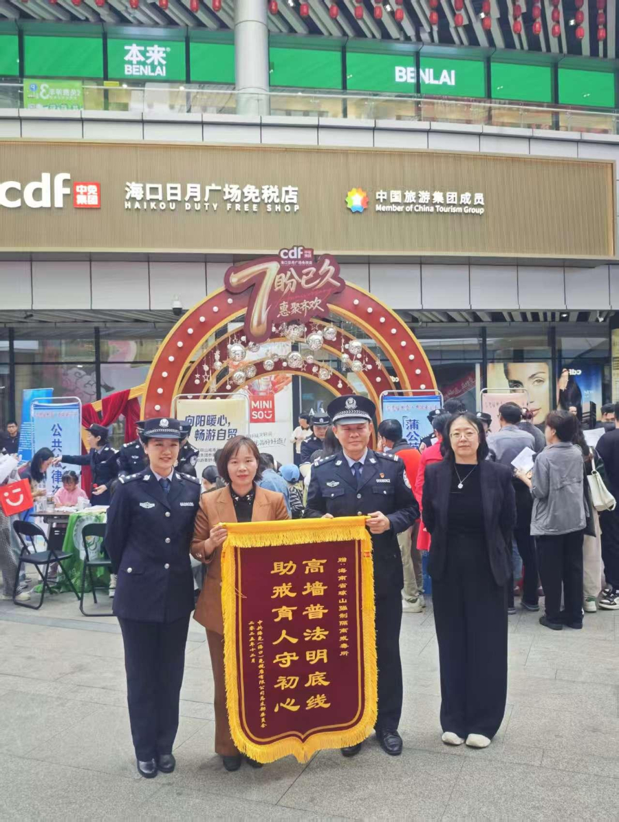 “高墙普法明底线,助戒育人守初心!”在“志愿暖新春·共筑安全年”志愿服务活动现场,海免(海口)免税店有限公司向海南省琼山强制隔离戒毒所赠送锦旗,以肯定其在禁毒普法宣传与戒毒社会服务方面的工作。