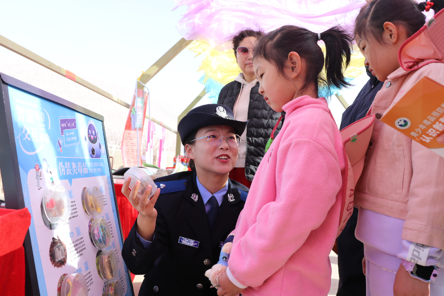 随着禁毒民警接地气的吆喝,“禁毒小铺”摊位很快成了景区里的热门点位。在仿真毒品模型展台前,民警拿着“跳跳糖”“奶茶粉”等新型毒品模型,结合真实案例讲解毒品的伪装套路;禁毒知识问答环节吸引了不少游人踊跃参与。