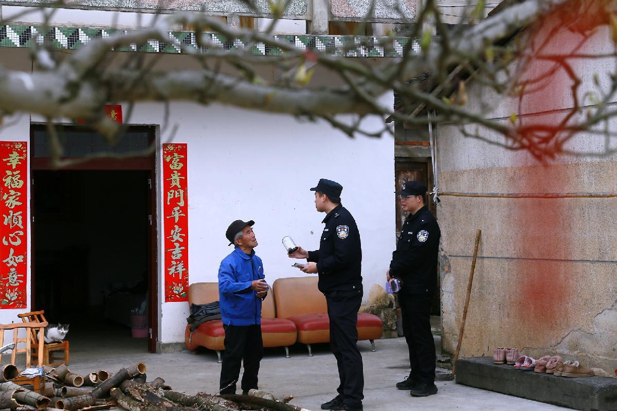 3月20日,安徽省宁国市公安局霞西派出所民辅警深入辖区田间地头与农户院落,扎实开展春季禁毒宣防与线索摸排工作。(通讯员 高鹏 向济伟 摄)