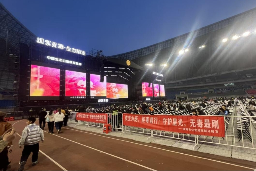 中国禁毒网讯 3月29日晚,安徽淮南市群星演唱会现场灯光如昼、人潮涌动。在欢呼声与旋律交织的热烈氛围中,淮南市公安局高新分局将禁毒宣传阵地前移,民警与志愿者穿梭于观众席,开展了一场“零距离”的普法行动。两个多小时的活动,覆盖观众近万人次,发放宣传资料3000余份。