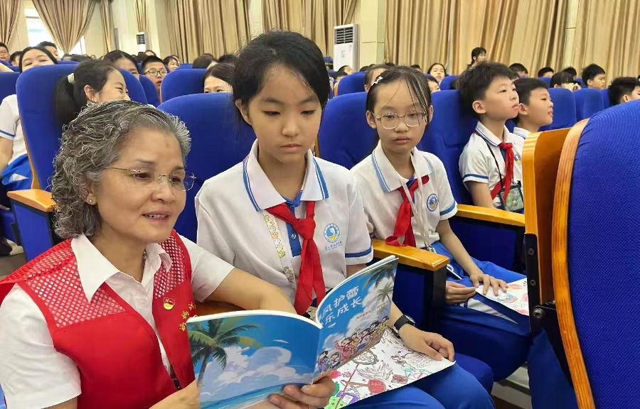2026年4月9日,海南省、海口市两级妇联“妈妈训教团”志愿服务队联合中共海口市秀英区西秀镇五源河公寓联合党支部、海口市公安局美兰分局红岛海岸派出所、海口市海景学校开展2026年春季禁毒流动课堂暨“护苗”专项行动宣传活动。