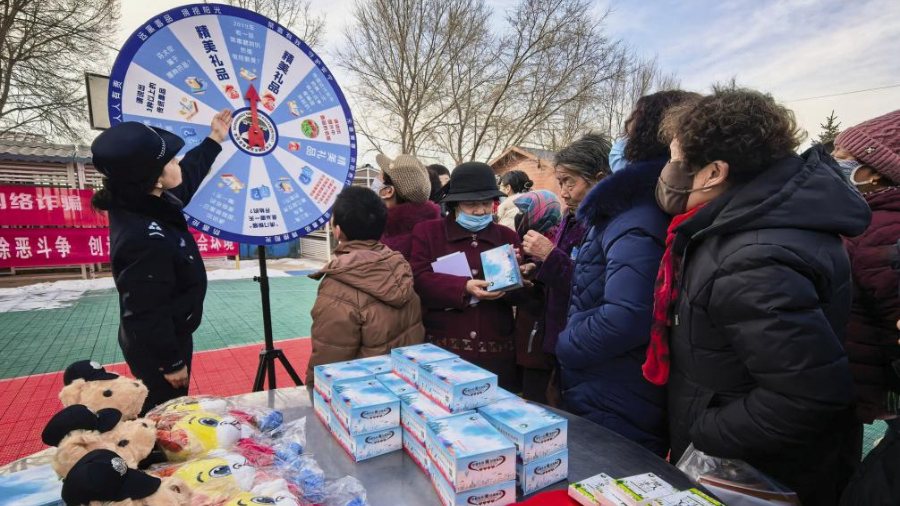 "活动现场,工作人员通过展示毒品仿真模型、发放禁毒宣传彩页与新春禁毒对联、开展“禁毒转转乐”趣味互动等形式,向居民普及禁毒法律法规和药物滥用防范知识。"